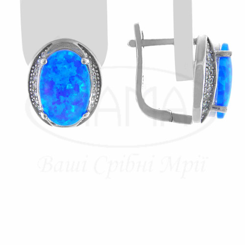 Сережки срібні з синім опалом та білим цирконом. Срібло 925 проби, покрите родієм. В комплекті каблучка, підвіска та сережки.