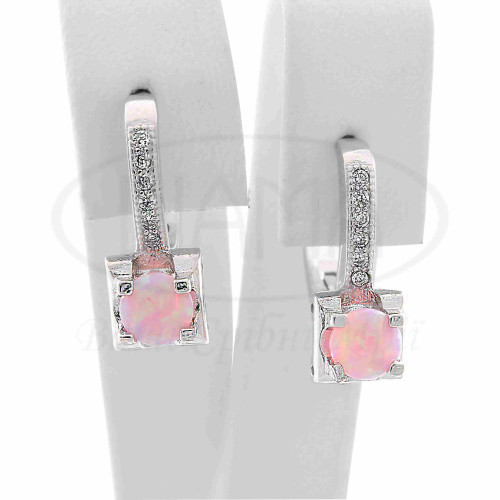 Сережки срібні з рожевим опалом та білим цирконом. Срібло 925 проби, покрите родієм. До набору входить каблучка, підвіска та сережки.
