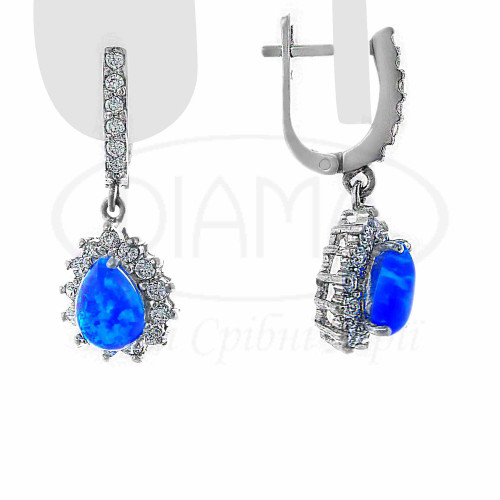 Сережки срібні з синім опалом та білим цирконом. Срібло 925 проби, покрите родієм. До комплетку входять: каблучка та сережки.