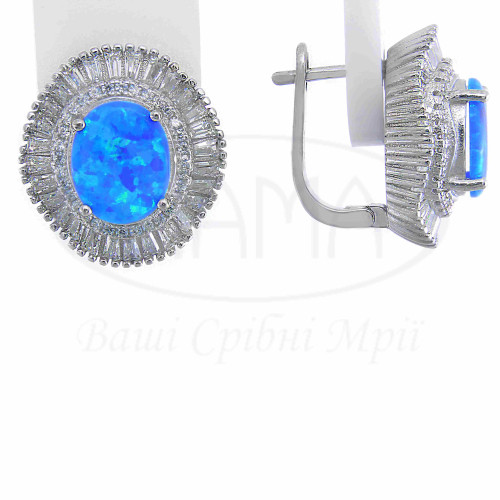 Сережки срібні з синім опалом та білим цирконом. Срібло 925 проби, покрите родієм. В наборі: каблучка, підвіска та сережки.