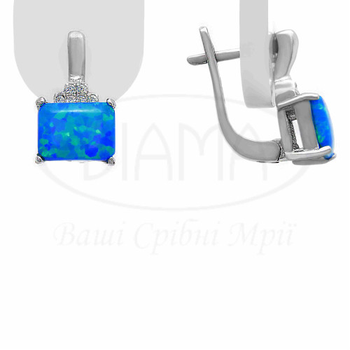 Сережки срібні з синім прямокутним опалом та цирконом. Срібло 925 проби, покрите родієм. В наборі присутні Каблучка, сережки та підвіска.