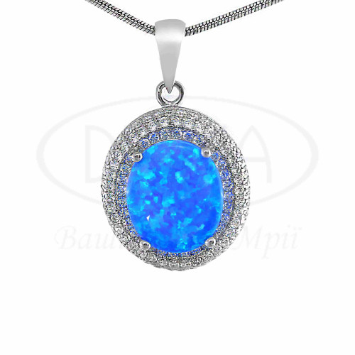 Срібна підвіска з синім Опалом та білим цирконом. Срібло 925 проби, покрите родієм. В наборі присутні каблучка, сережки та підвіска.