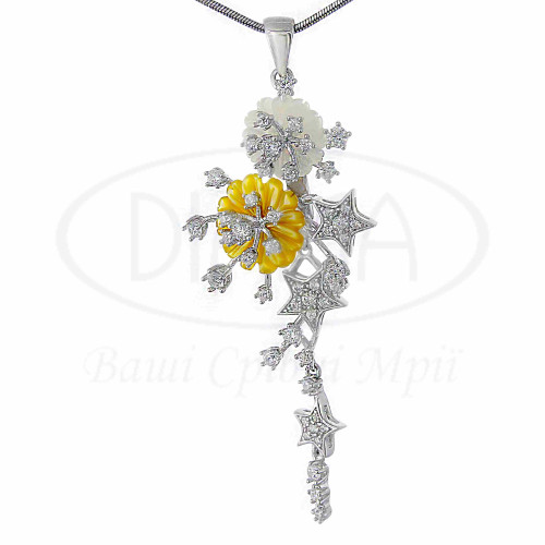 Срібна підвіска з перламутром і цирконом. Срібло 925 проби, вкрите родієм. Виконано в стилі Роберто Браво.