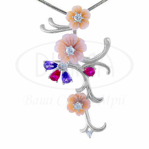 Підвіска срібна з цирконом і перламутром, виконана в стилі Роберто Браво. Срібло 925 проби, покрите родієм. В наборі присутні каблучка, сережки та підвіска.