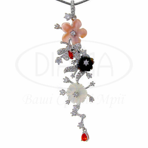 Срібна підвіска з цирконом та перламутром, виконана в стилі Роберто Браво. Срібло 925 проби, покрите родієм. Складається комплект з каблучки, підвіски та сережок.