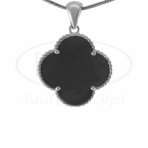 Срібна підвіска 925 проби, покрита родієм. Вставка онікс в формі Конюшини. Розмір підвіски 20 мм.