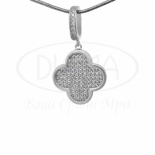 Підвіска срібна з Цирконом, виконана у формі "клевер". Срібло 925 проби, покрите родієм. Комплект складається з каблучки, підвіски та сережок. Розмір клевера 15 мм