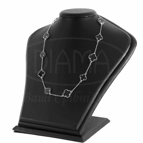 Срібне кольє з Оніксом. Срібло 925 проби, покрите родієм. Сережки виготовлена в формі Чотирилисник. Розмір головного елементу сережки 12 та 14 мм.