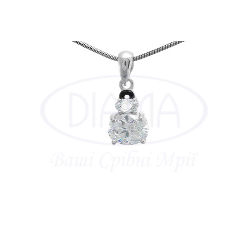 Срібна підвіска з білим цирконом та чорною емаллю. Срібло 925 проби, покрите родієм. В наборі присутні каблучка, сережки та підвіска.