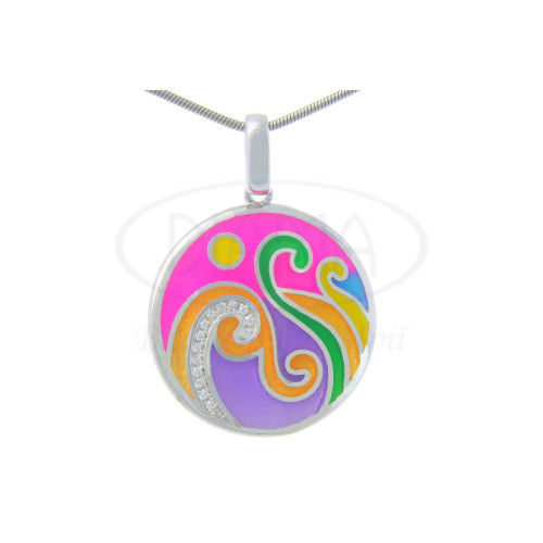 Срібна підвіска з кольоровою емаллю та білим цирконом. Срібло 925 проби, покрите родієм. Комплект складається з каблучки, підвіски та сережок.