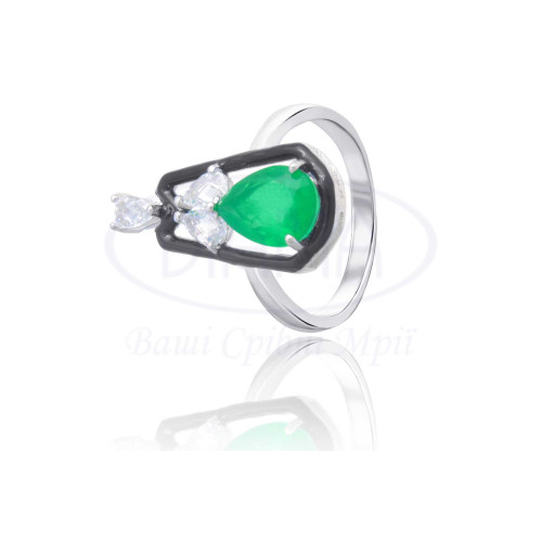 Срібна каблучка з білим та зеленим цирконом у формі краплі та чорною емаллю. Срібло 925 проби, покрите родієм. В наборі присутні каблучка, сережки та підвіска.