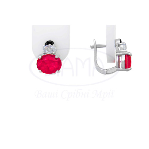 Срібні сережки з червоним та білим цирконом з чорною емаллю. Срібло 925 проби, покрите родієм. В наборі присутні каблучка, сережки та підвіска.