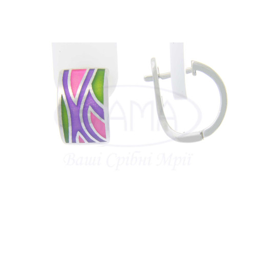 Срібні сережки з кольоровою емаллю. Срібло 925 проби, покрите родієм. Комплект складається з каблучки, підвіски та сережок.