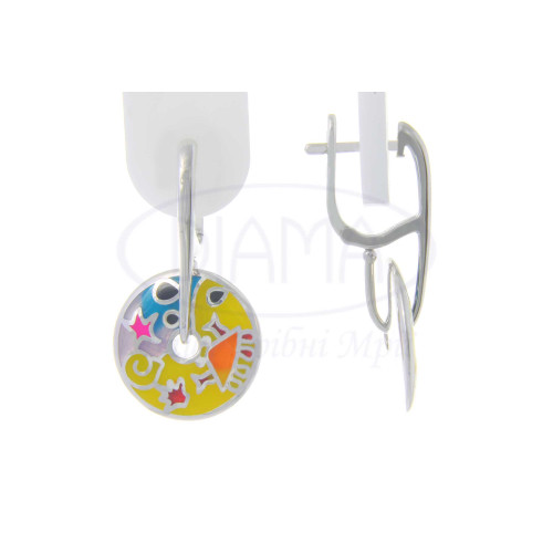 Срібні сережки з кольоровою емаллю. Срібло 925 проби, покрите родієм. В наборі каблучка, підвіска та сережки.