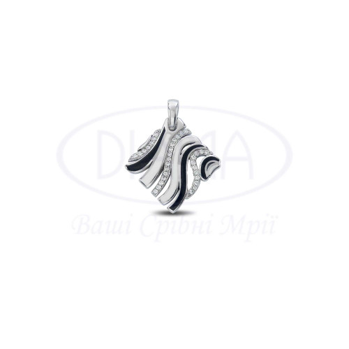 Срібна підвіска з кольоровою емаллю та білим цирконом у формі ромба. Срібло 925 проби, покрите родієм. В комплекті каблучка, сережки та підвіска. Розмір головного елементу 22х22 мм.
