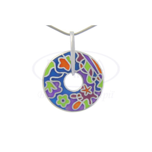 Срібна підвіска з кольоровою емаллю. Срібло 925 проби, покрите родієм. Комплект складається з каблучки, підвіски та сережок.