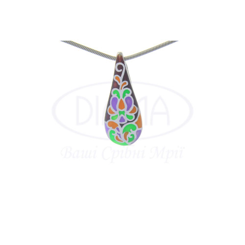 Срібна підвіска з кольоровою емаллю у формі краплі. Срібло 925 проби, покрите родієм. В наборі каблучка, підвіска та сережки.