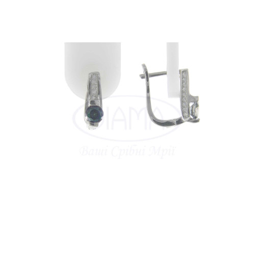 Сережки срібні з топаз містик-кришталь та білим цирконом. Срібло 925 проби, покрите родієм. В наборі є каблучка та сережки.