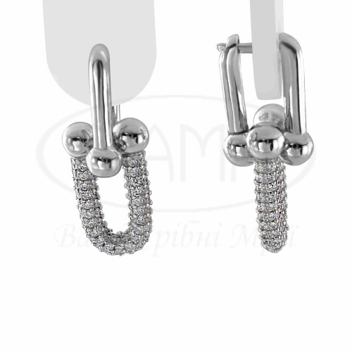 Сережки срібні з білим цирконом. Срібло 925 проби, покрите родієм. Розмір 17*12 та 19*12 мм.