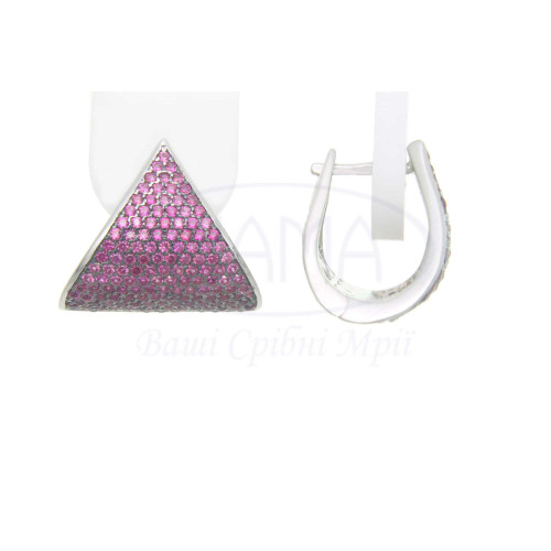 Срібні Сережки 925 проби з малиновим цирконом, покриті родієм.
