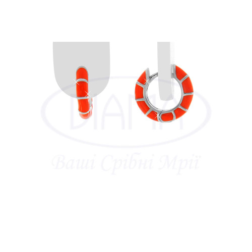 Срібні круглі сережки з помаранчевою емаллю. Срібло 925 проби, покрите родієм. Висота 14 мм, ширина 3 мм
