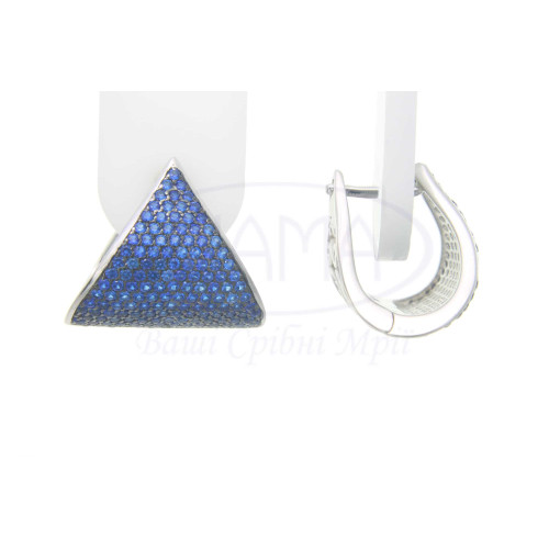 Срібні Сережки 925 проби з синім цирконом, покриті родієм.