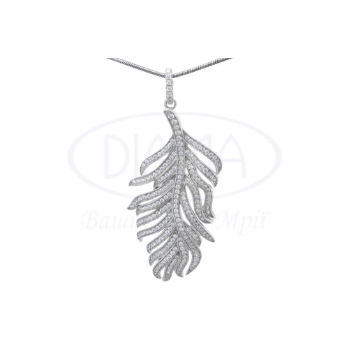 Підвіска срібна з білим цирконом у формі пера. Срібло 925 проби, покрите родієм. В наборі присутні каблучка, сережки та підвіска. В наборі присутні каблучка, сережки та підвіска.