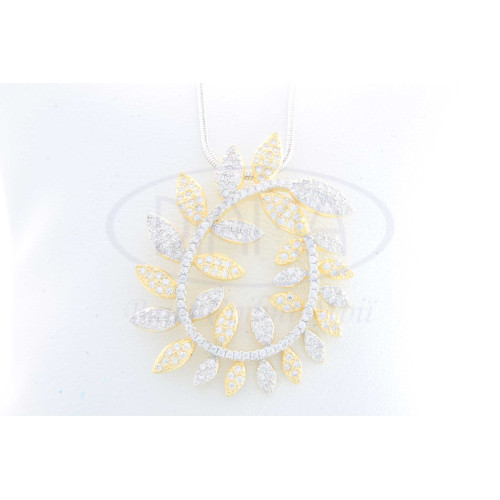 Срібна підвіска з білим цирконієм у формі Гілки. Срібло 925 проби, покрите родієм і жовтою позолотою. В наборі каблучка, сережки та підвіска.
