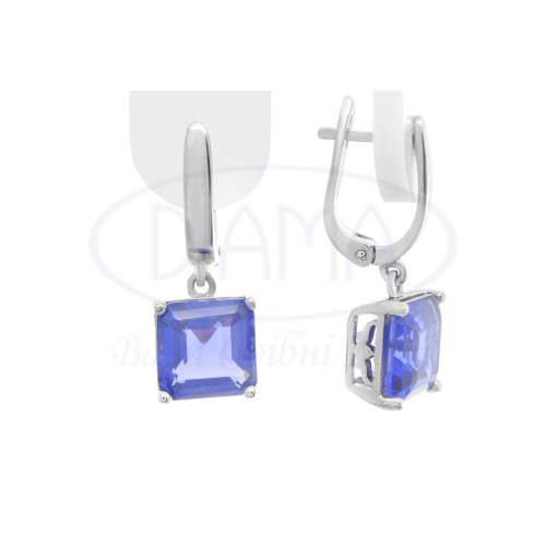 Сережки срібні з Танзанітом в формі квадрату. Срібло 925 проби, покрите родієм. В наборі присутні каблучка, сережки та підвіска. Розмір головного елементу 11 мм.