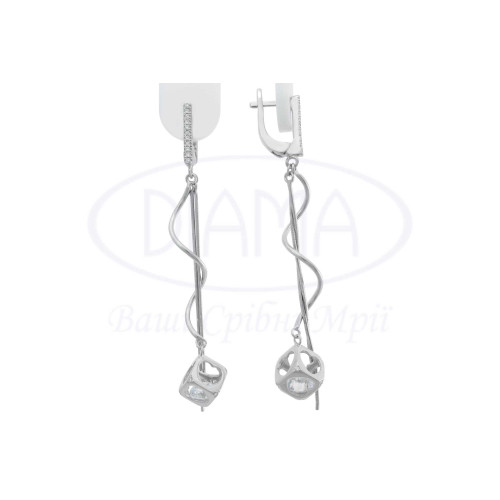 Срібні сережки з білим цирконом. Срібло 925 проби, покрите родієм.
