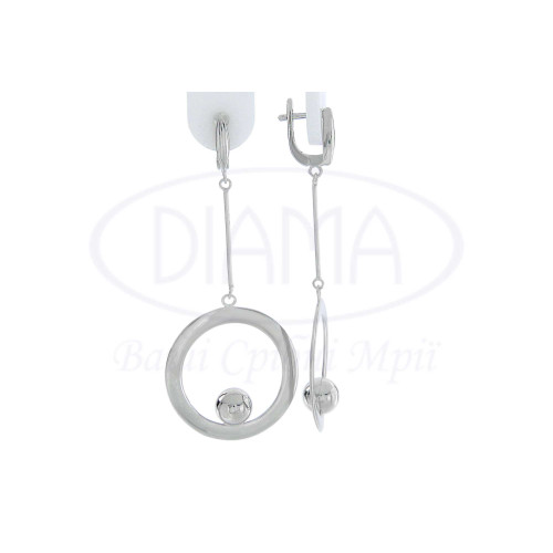 Сережки срібні у формі круга, кульки та палички. Срібло 925 проби, покрите родієм. Розмір палички 25 мм. Діаметр круга 29 мм,а кульки 8 мм.