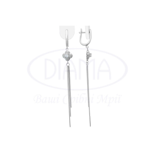 Срібні сережки з білим цирконом. Срібло 925 проби, покрите родієм.