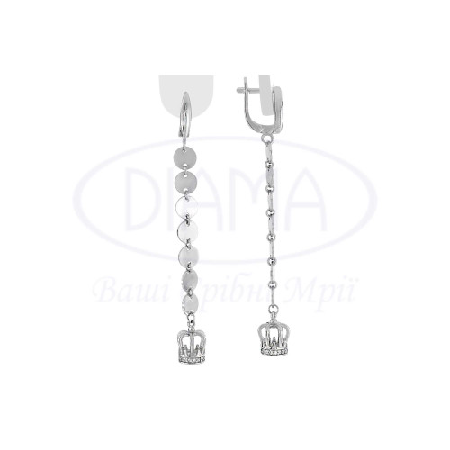 Срібні сережки з короною. Срібло 925 проби, покрите родієм.