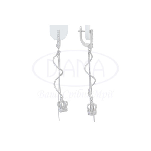 Срібні сережки з короною. Срібло 925 проби, покрите родієм.