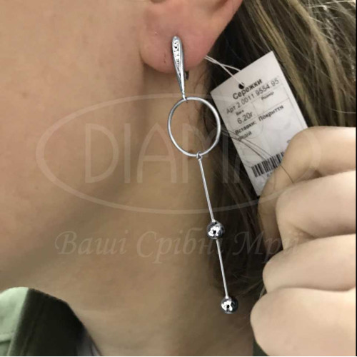 Срібні сережки з кульками. Срібло 925 проби, покрите родієм.