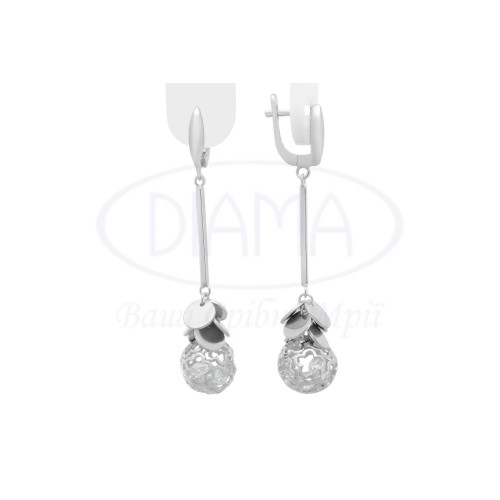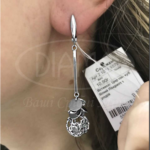 Сережки срібні з кульками та білим цирконом. Срібло 925 проби, покрите родієм.