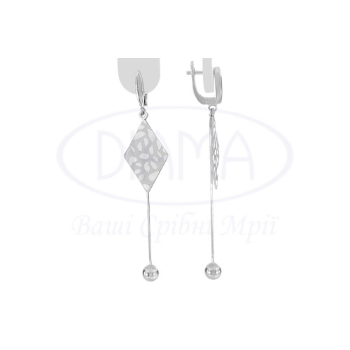 Сережки срібні з ромбом. Срібло 925 проби, покрите родієм. Розмір 27 * 15 мм
