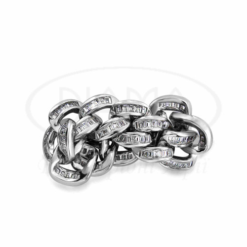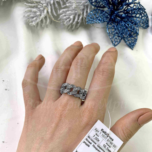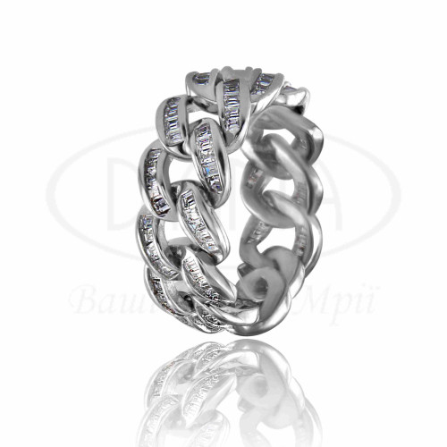 Каблучка срібна з білим цирконом у формі ланцюга. Срібло 925 проби, покрите родієм.