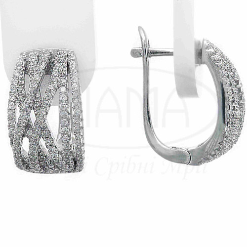 Сережки срібні з білим цирконом. Срібло 925 проби, покрите родієм. В комплекті є каблучка.