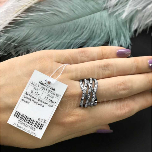 Каблучка срібна з білим цирконом. Срібло 925 проби, покрите родієм.