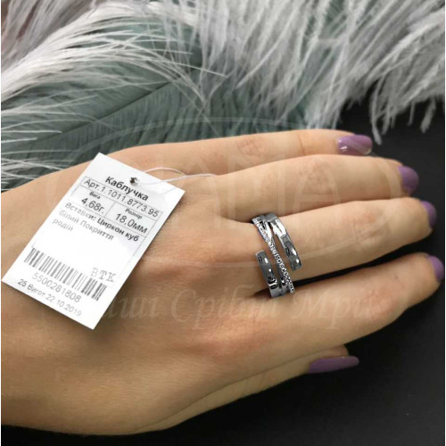 Срібна каблучка з білим цирконом. Срібло 925 проби, покрите родієм.