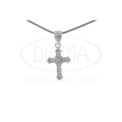 Хрестик срібний з білим Цирконом. Срібло 925 проби, покрите родієм. Розмір хрестика 15×12 мм