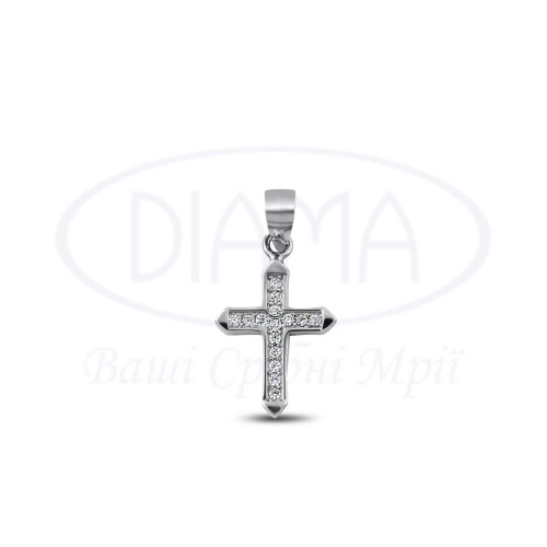 Срібний хрестик з білим Цирконом. Срібло 925 проби, покрите родієм. Розмір хрестика 12×15 мм