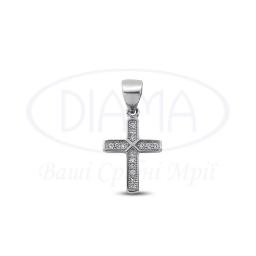 Срібний хрестик з білим Цирконом. Срібло 925 проби, покрите родієм. Розмір хрестика 12,5×15,5 мм