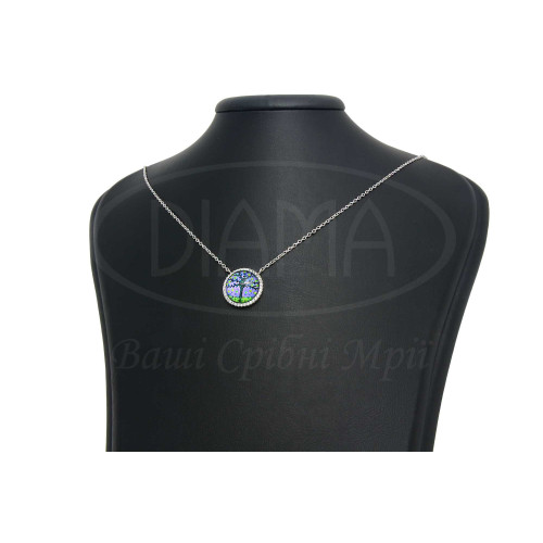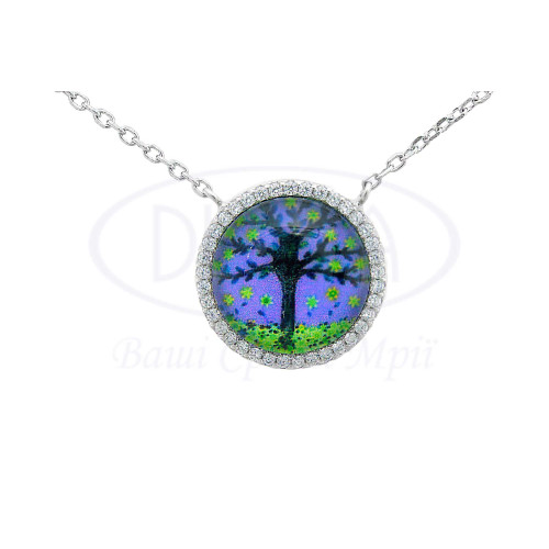 Кольє срібне з ювелірним склом з малюнком дерева та білим цирконом. Срібло 925 проби, покрите родієм.