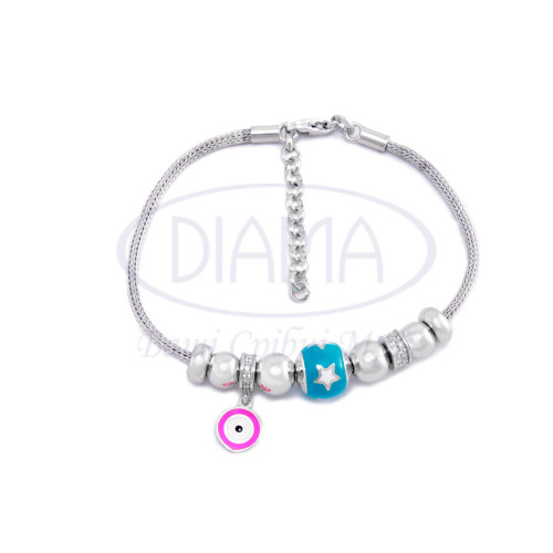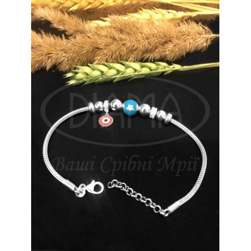 Браслет срібний з білим цирконом та емаллю зеленого та білого кольору. Срібло 925 проби, покрите родієм. Комбінація додаткових "шармів" може відрізнятися від фото.