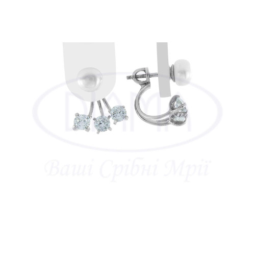 Сережки срібні з білою перлиною та білим цирконом. Срібло 925 проби, покрите родієм. Розмір перлини 7 мм,а розмір циркона 4 мм