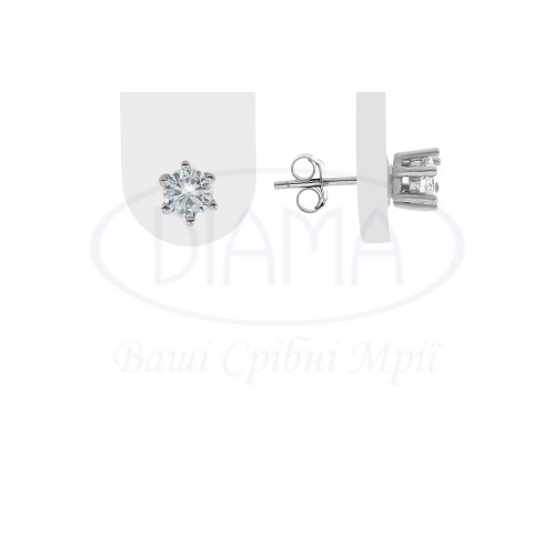 Пусети срібні з білим цирконом у формі круга, розміром 6 мм. Срібло 925 проби, покрите родієм.