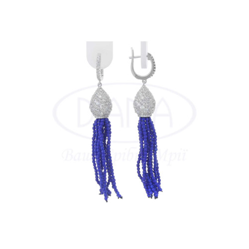 Срібні сережки з білим та синім цирконом. Срібло 925 проби, покрите родієм.