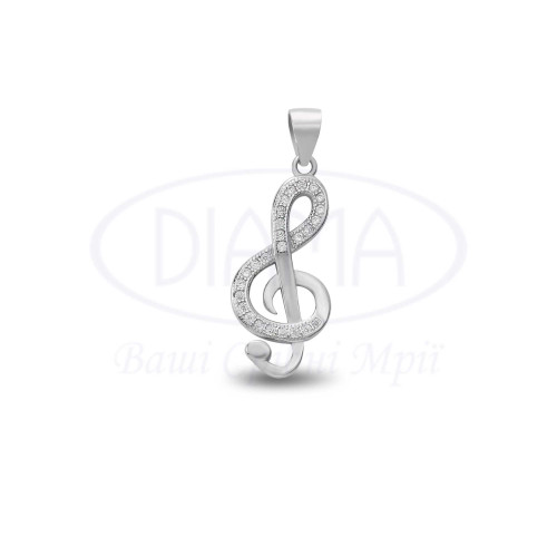 Срібна підвіска у формі "Скрипковий ключ" з білим цирконом. Срібло 925 проби, покрите родієм. Розмір підвіски 12х27,5 мм.